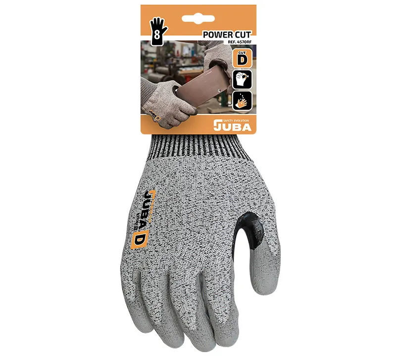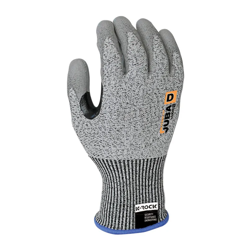 Guante de fibra textil K-rock®, la nueva tecnología de corte de Juba, recubierto de poliuretano en la palma.